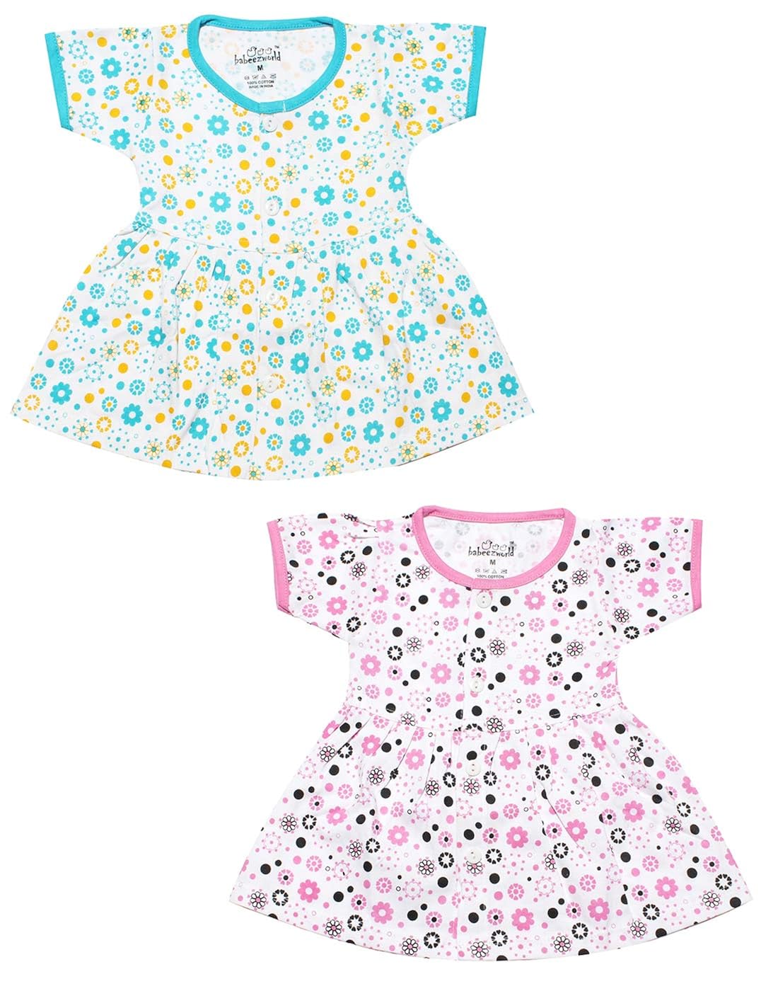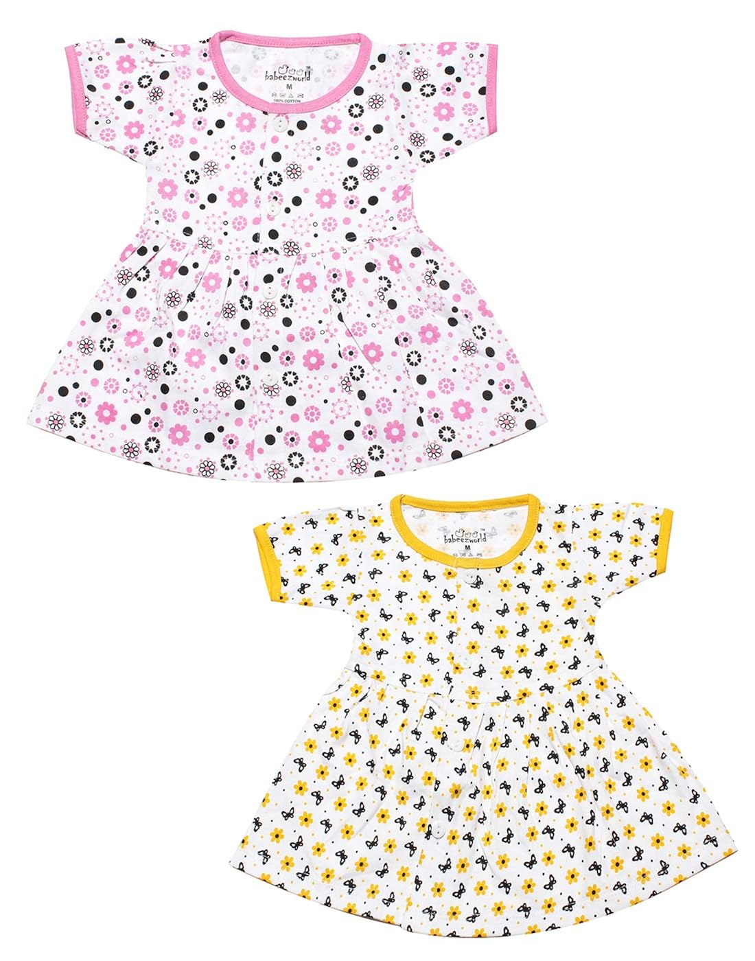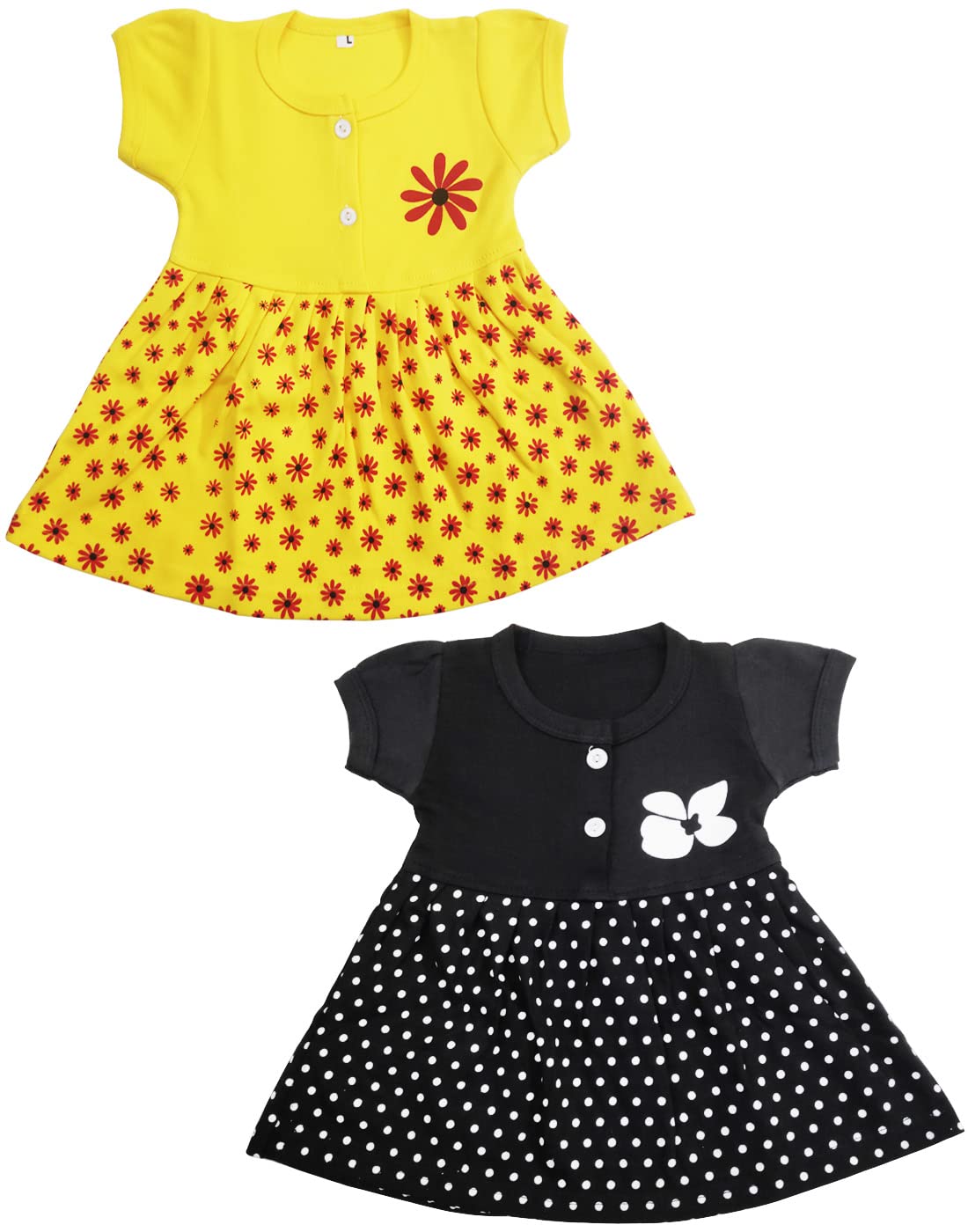 babeezworld baby girl cotton dress - full sleeves knee length fit and flare dungaree frock jhabla regular fit top tshirt (Red, Black, 1-2 Years) Pack Of 4