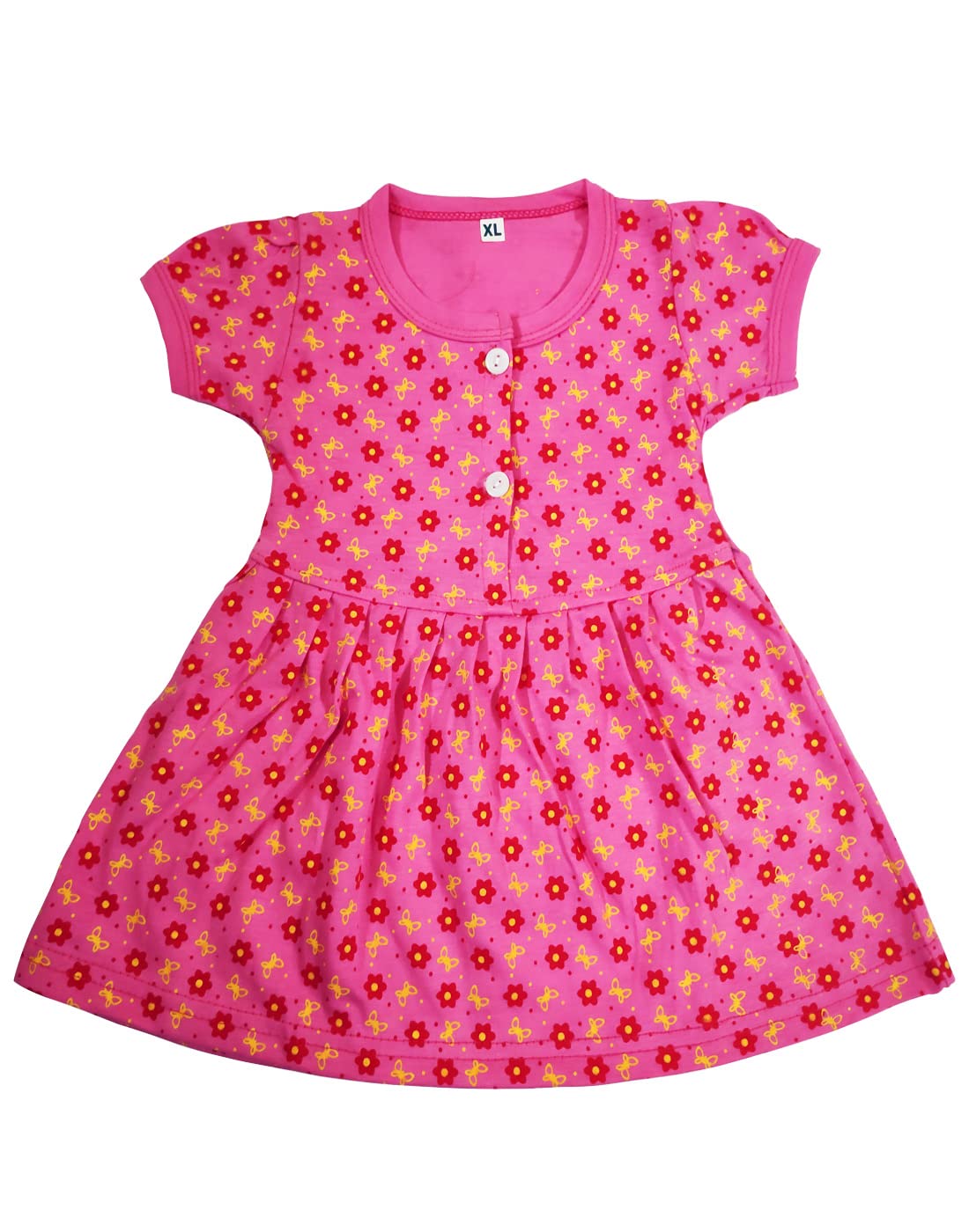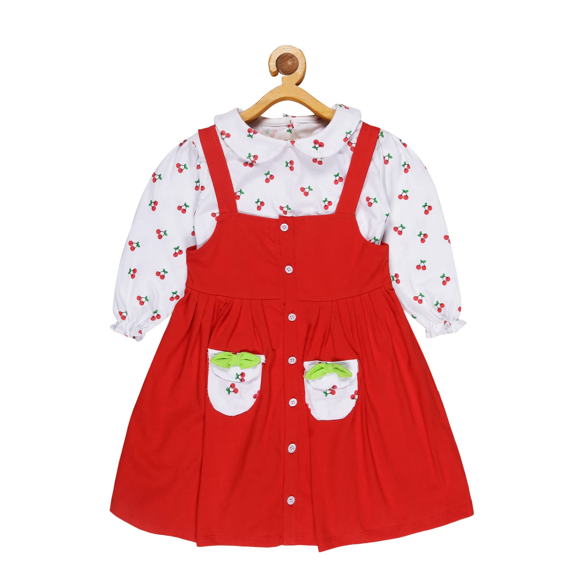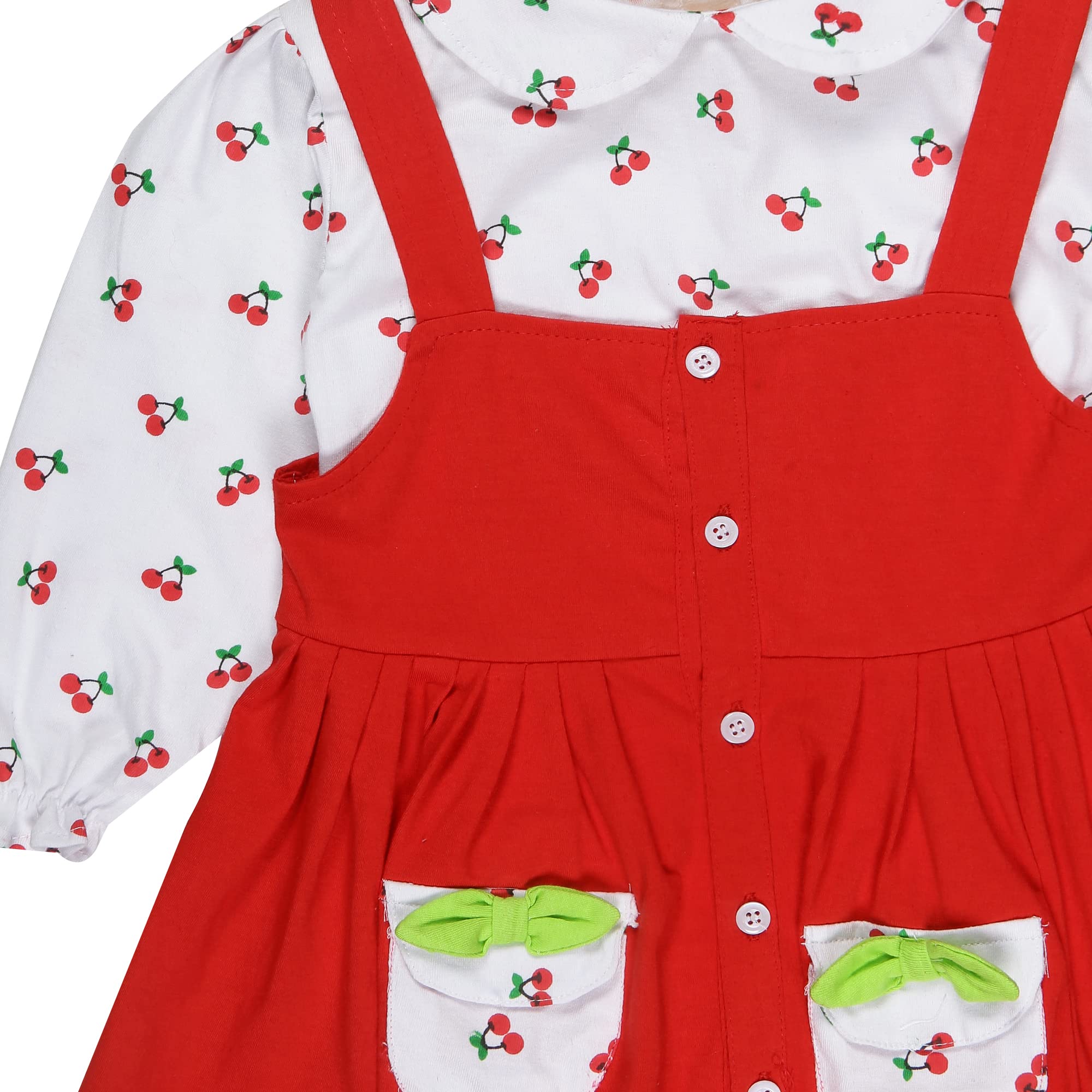 babeezworld baby girl cotton dress - full sleeves knee length fit and flare dungaree frock jhabla regular fit top tshirt (Red, 1-2 Years)